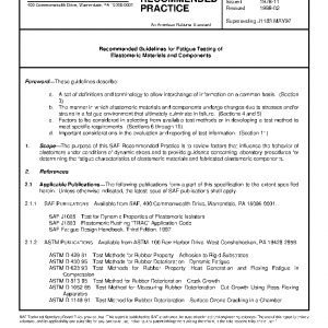 The purpose of this SAE Recommended Practice is to review factors that influence the behavior of elastomers under conditions of dynamic stress and to provide guidance concerning laboratory procedures for determining the fatigue characteristics of elastomeric materials and fabricated elastomeric components.