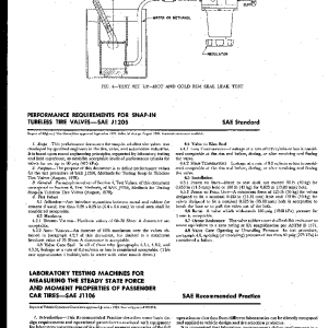 This performance document for snap-in tubeless tire valves was developed by qualified engineers in the tire, valve, and automotive industries. It is based upon sound engineering principles, supported by laboratory testing and field experience, to establish acceptable levels of performance criteria for valves for use up to 60 psig (415 kPa).
