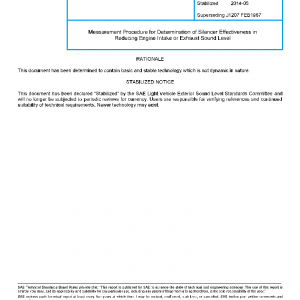 Measurement Procedure for Determination of Silencer Effectiveness in Reducing Engine Intake or Exhaust Sound Level(STABILIZED May 2014)