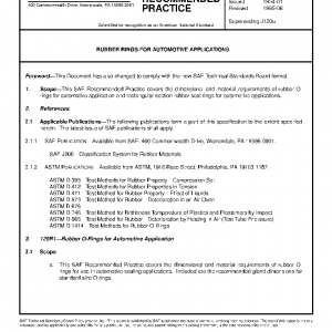 This SAE Recommended Practice covers the dimensional and material requirements of rubber O-rings for automotive application and rectangular section rubber seal rings for automotive applications.