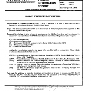 This Glossary confines its content to the specific field of electronic systems and subsystems as they pertain to the automotive engineer.