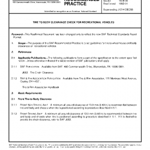 The purpose of this SAE Recommended Practice is to set guidelines for tire to wheel house and body clearances on recreational vehicles.