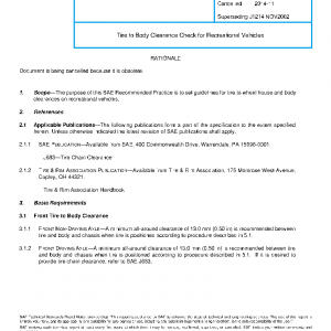 The purpose of this SAE Recommended Practice is set guidelines for tire to wheel house and body clearances on recreational vehicles.