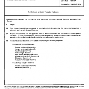 Test Methods for Metric Threaded Fasteners(Cancelled Jul 1999)
