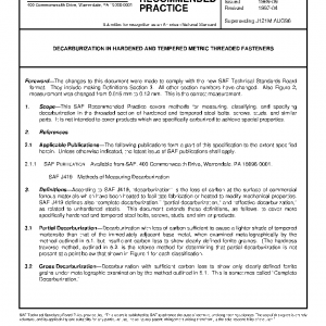 This SAE Recommended Practice covers methods for measuring, classifying, and specifying decarburization in the threaded section of hardened and tempered steel bolts, screws, studs, and similar parts. It is not intended to cover products which are specifically carburized to achieve special properties.
