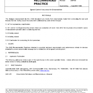 This SAE Recommended Practices intended to provided minimum requirements and performance criteria for devices intended to prevent snowmobile runaway due to malfunction of the speed control system.