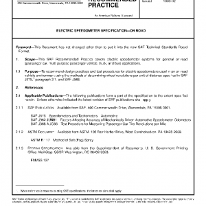 This SAE Recommended Practice covers electric speedometer systems for general on-road (passenger car, multi-purpose passenger vehicle, truck, and bus) applications.