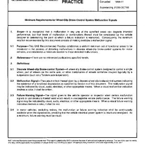 This SAE Recommended Practice establishes a uniform minimum set of functional areas to be monitored in the process of detecting malfunctions in discrete wheel-slip brake-control systems for motor vehicles, and establishes a minimum reaction to those detected malfunctions.