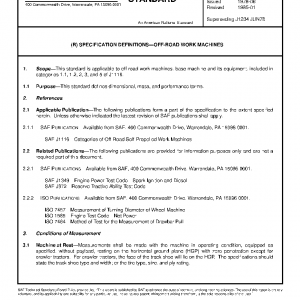 This standard is applicable to off-road work machines, base machine and its equipment, included in categories 1.1, 1.2, 2, 3, and 5 of J1116.