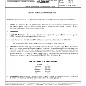 The purpose of this SAE Recommended Practice is to establish specifications for use as a guide to the automatic transmission and hydraulic systems designer, helping him to select cast iron sealing ring width, thickness, coatings, and other accepted design details.