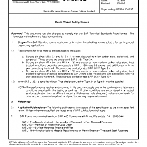 This SAE Standard covers requirements for metric thread rolling screws suitable for use in general engineering applications.