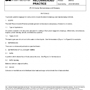 This SAE Recommended Practice presents general nomenclature and glossary of terms for oil coolers.
