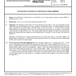 The SAE Recommended Practice is intended for use in measuring the radius of curvature (ROC) of spherical convex mirrors.