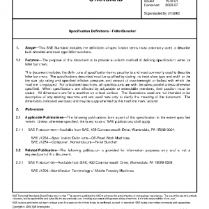 This SAE Standard includes the definitions of specification terms most commonly used to describe both wheeled and crawler type feller bunchers.The purpose of this document is to provide a uniform method of defining specification terms for feller/bunchers.