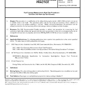 Fuel Economy Measurement–Road Test Procedure–Cold Start and Warm-Up Fuel Economy(Cancelled Oct 2002)