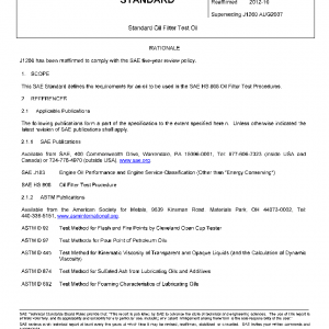 This SAE Standard defines the requirements for an oil to be used in the SAE HS 806 Oil Filter Test Procedures.