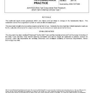 Joint RCCC/SAE Fuel Consumption Test Procedure (Short Term In-Service Vehicle) Type 1(STABILIZED May 2011)