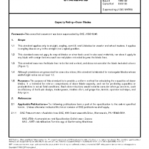 The purpose of this standard is to provide a uniform method for calculating the capacities of dozer blades. It is intended for relative comparisons of dozer blade capacity, and not for predicting capacities or productivities in actual field conditions. Such determinations would need to consider other parameters, such as efficiency of the blade design, tractor power, tractive effort, soil properties, terrain, operator technique, and duty cycle.