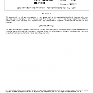 Occupant Restraint System Evaluation – Passenger Cars and Light-Duty Trucks(STABILIZED Mar 2011)