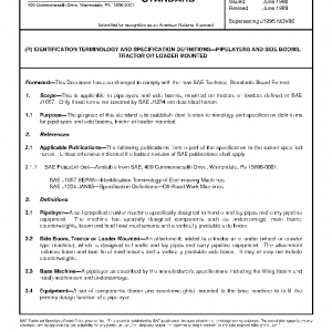 This is applicable to pipelayers and side booms, mounted on tractors or loaders defined in SAE J1057. Only those terms not covered by SAE J1234 are described herein.