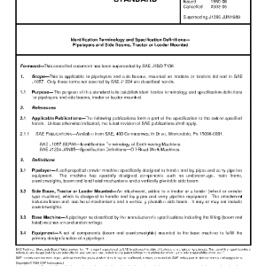 The purpose of this standard is to establish identification terminology and specification definitions for pipelayers and side booms, tractor or loader mounted.