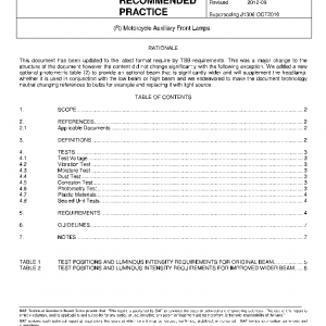 This engineering design specification provides parameters and general requirements for auxiliary front lamps to be used on motorcycles.