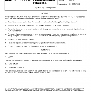 This SAE Recommended Practice provides test procedures, requirements, and guidelines for rear fog lamp systems.