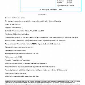 This SAE Standard provides test procedures, requirements, and guidelines for motorcycle turn signal lamps. It does not apply to mopeds.