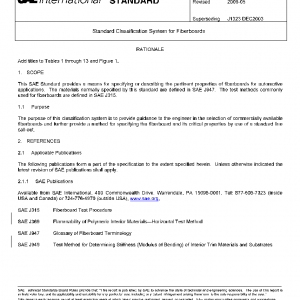This SAE Standard provides a means for specifying or describing the pertinent properties of fiberboards for automotive applications. The materials normally specified by this standard are defined in SAE J947. The test methods commonly used for fiberboards are defined in SAE J315.