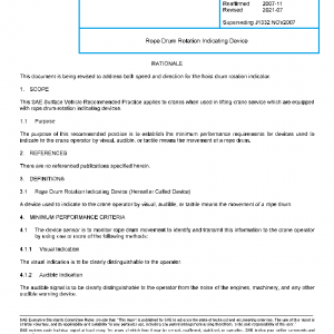 This SAE Surface Vehicle Recommended Practice applies to cranes when used in lifting crane service which are equipped with rope drum rotation indicating devices.