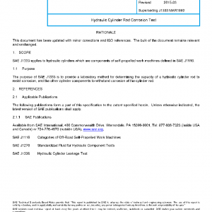 SAE J1333 applies to hydraulic cylinders which are components of self-propelled work machines defined in SAE J1116.