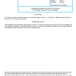 Test Method for Measuring Power Consumption of Hydraulic Pumps for Trucks and Buses(STABILIZED May 2023)