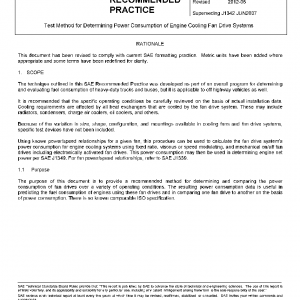 Using known power/speed relationships for a given fan, this procedure can be used to calculate the fan drive system’s power consumption for engine cooling systems using fixed ratio, viscous or speed modulating, and mechanical on/off fan drives including electronically activated fan drives. This power consumption may then be used in determining engine net power per SAE J1349. For fan power/speed relationships, refer to SAE J1339.