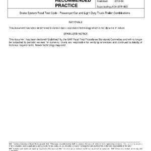 Brake System Road Test Code – Passenger Car and Light-Duty Truck-Trailer Combinations(STABILIZED Apr 2013)