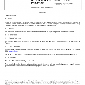 This SAE Recommended Practice identifies major components and parts peculiar to clam bunk skidders. Illustrations used here are not intended to include all existing machines or to be exactly descriptive of any particular machine. They have been provided to illustrate the principles to be used in applying this document.