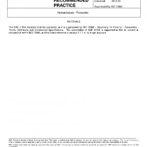 This SAE Recommended Practice identifies major components and parts peculiar to forwarders. Illustrations used here are not intended to include all existing machines or to be exactly descriptive of any particular machine. They have been provided to illustrate the principles to be used in applying this document. Purpose The purpose of this document is to provide standardization of terms for major components of forwarders.