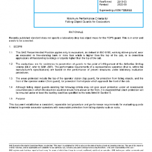 Minimum Performance Criteria for Falling Object Guards for Excavators