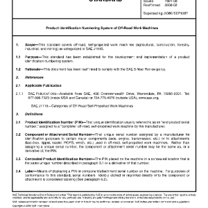 Product Identification Numbering System of Off-Road Work Machines