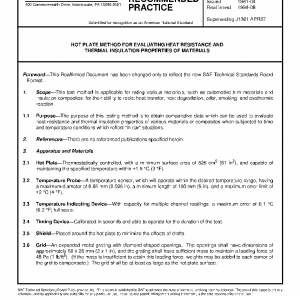 This test method is applicable for rating various materials, such as automotive trim materials and insulation composites, for their ability to resist heat transfer, heat degradation, odor, smoking, and exothermic reaction.