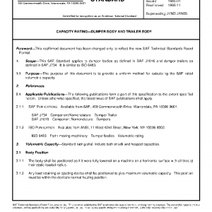 This SAE Standard applies to dumper bodies as defined in SAE J1016 and dumper trailers as defined in SAE J734. It is similar to ISO 6483.