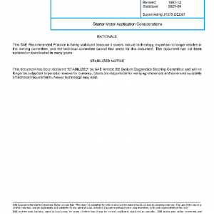 This SAE Recommended Practice identifies some basic and general conditions that should be considered when making electrical starter motor applications.