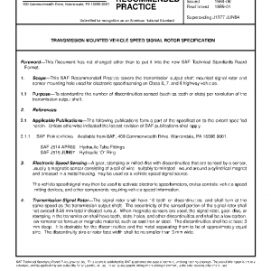 This SAE Recommended Practice covers the transmission output shaft mounted signal rotor and sensor mounting hole used for electronic speed sensing on Class 6, 7, and 8 highway vehicles.