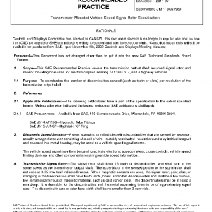 This SAE Recommended Practice covers the transmission output shaft mounted signal rotor and sensor mounting hole used for electronic speed sensing on Class 6, 7, and 8 highway vehicles.