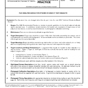 This SAE Recommended Practice is intended to provide guidelines for the identification of subjects used in dynamic tests. It establishes recommendations for location and description of target areas on test subjects or test devices, as well as recommendations for photographic calibration and timing.