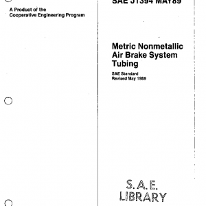 This standard covers the minimum requirements for metric sizes of nonmetallic tubing as manufactured for use in air brake systems. Nonreinforced products are designated type A and reinforced products type B. It is not intended to cover tubing for any portion of the system that operates below -40°C (-40°F), above +93°C (+200°F), above a maximum working gage pressure of 1.0 MPa (150 psi), or in an area subject to attack by battery acid. This tubing is intended for use in the brake system for connections that maintain a basically fixed relationship between components during vehicle operation. Coiled tube assemblies required for those installations where flexing occurs are covered by this standard and SAE J1131 to the extent of setting minimum requirements on the essentially straight tube and tube fitting connections, which are used in the construction of such assemblies.2