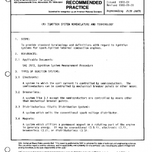 To provide standard terminology and definitions with regard to ignition systems for spark-ignited internal combustion engines.