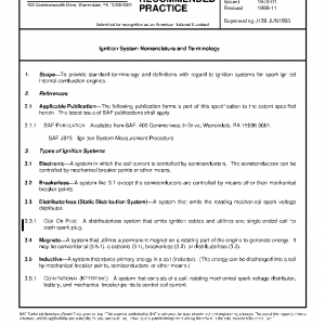 To provide standard terminology and definitions with regard to ignition systems for spark-ignited internal combustion engines.