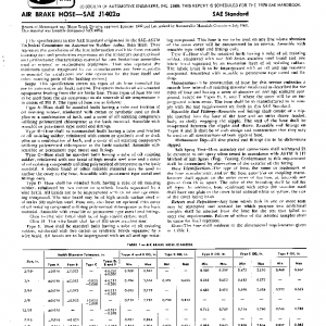 This specification covers six types of air hose intended for use in automotive air brake systems. The system includes all air actuated equipment leading from the air brake line. These types of hose are not to be used from the air compressor to air reservoir if air temperature is in excess of 250 F. The types of hose are as follows: