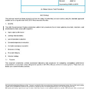 This SAE Recommended Practice establishes uniform test procedures for air brake systems pneumatic, electronic, and electrical/pneumatic valves with respect to: