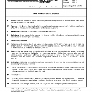 This SAE Information Report establishes performance requirements for devices used to warm diesel fuel before entering the fuel filter(s).